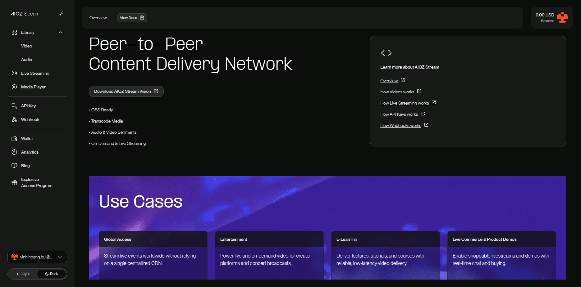 With your wallet topped up, you're ready to start using the services provided by AIOZ Stream.